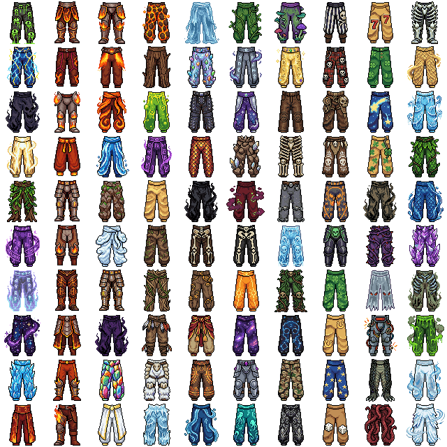 100 Pixel Art Pants. All the frames are 64x64.